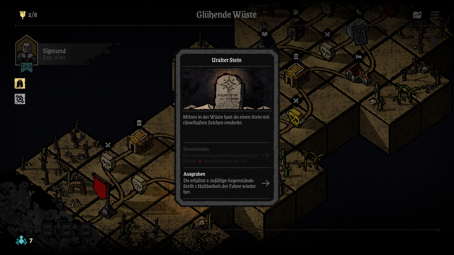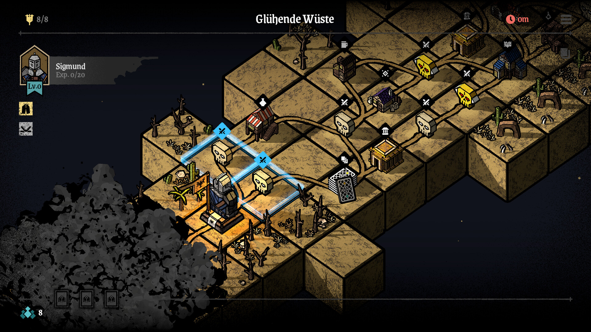 Stellen Sie Ihr Team aus Söldnern, nicht aus Karten, zusammen. Söldnereinheiten können auf verschiedene Weise während der Reise verbessert und modifiziert werden, was bei jedem Spiel neue strategische Kombinationen ermöglicht.