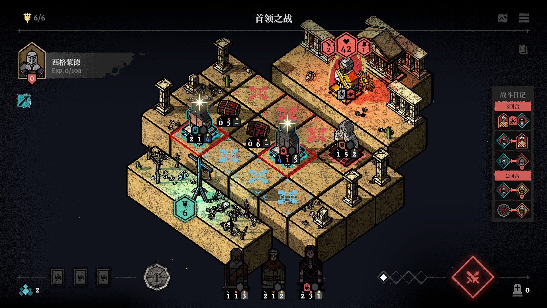 将一名雇佣兵部署到战场上,角色将根据属性先后自动开展战斗。