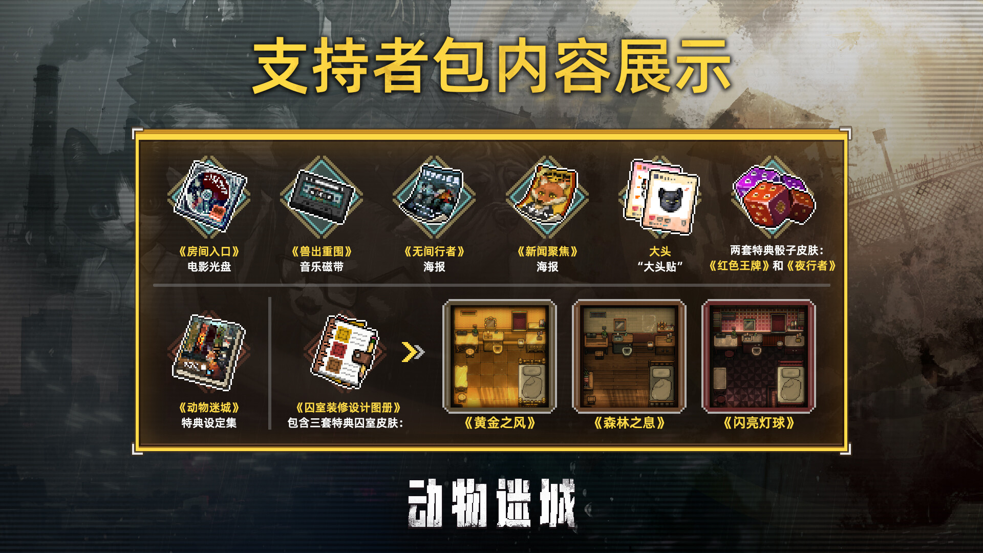 如果你非常喜欢《动物迷城》并想要支持Metal Head Games团队的游戏制作之路,这个支持者包将是你的最佳选择!