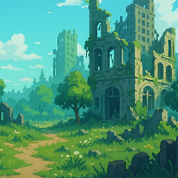 Retro pixel graphics blended with detailed lighting effects. Explore misty forests, abandoned cities, and underwater ruins for a post-apocalyptic fantasy experience.