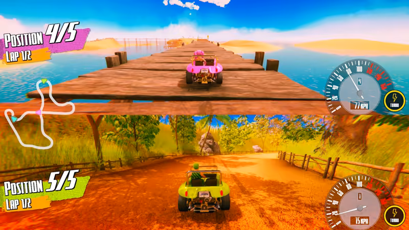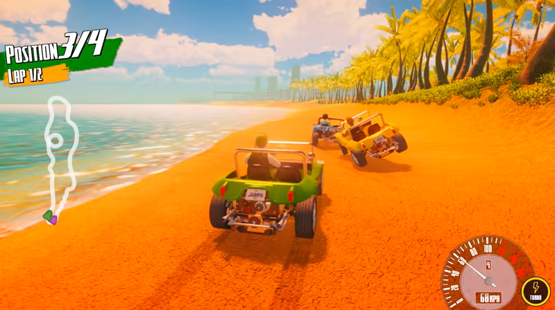 Get ready for an exciting race in Jampa Buggys, a local multiplayer racing game inspired by the tropical landscapes of Paraíba, Brazil.