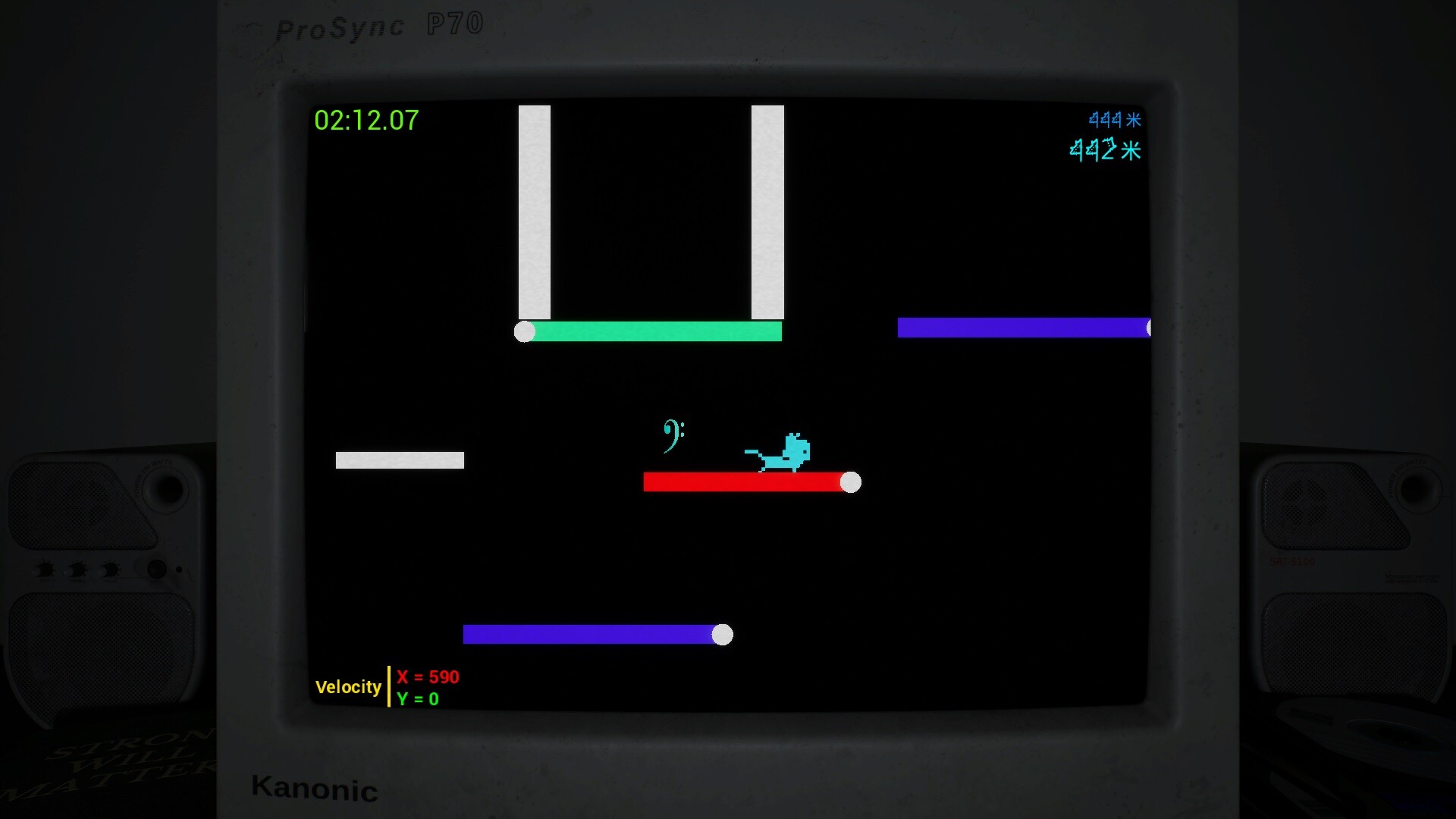 • Vertical Jump: Unlike the horizontal jump, the vertical jump has a fixed distance. Precision is key — even being off by a single pixel can cause you to miss your mark. Time your vertical jumps carefully and position yourself perfectly to overcome the toughest challenges.