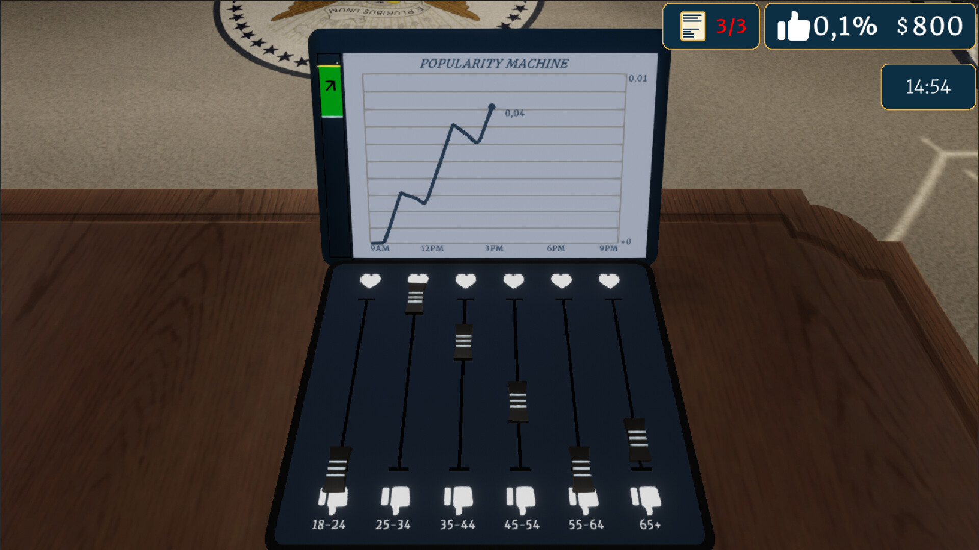 • Tam Dokunsal Deneyim: Burası sizin ofisiniz. Kararnameleri fırlatın, danışmanlarınızı itin kakın. Siz Başkansınız, kimse size bir şey diyemez.