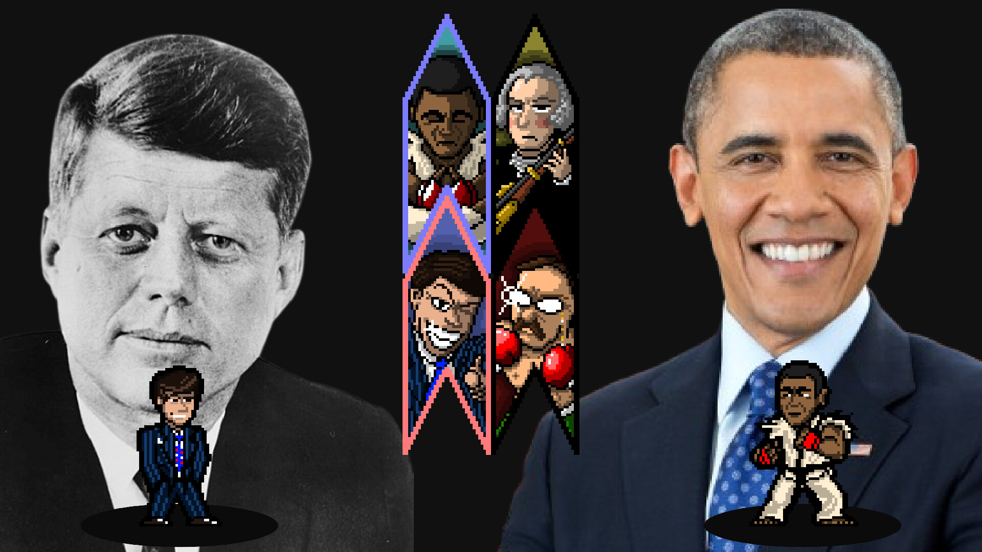 As lifelong fighting game fans, we've pulled inspiration from fighting games across genres to give each character unique and deeply expressive movement. Dash dance with Obama, air-assault with Teddy Roosevelt, and wavedash with JFK!