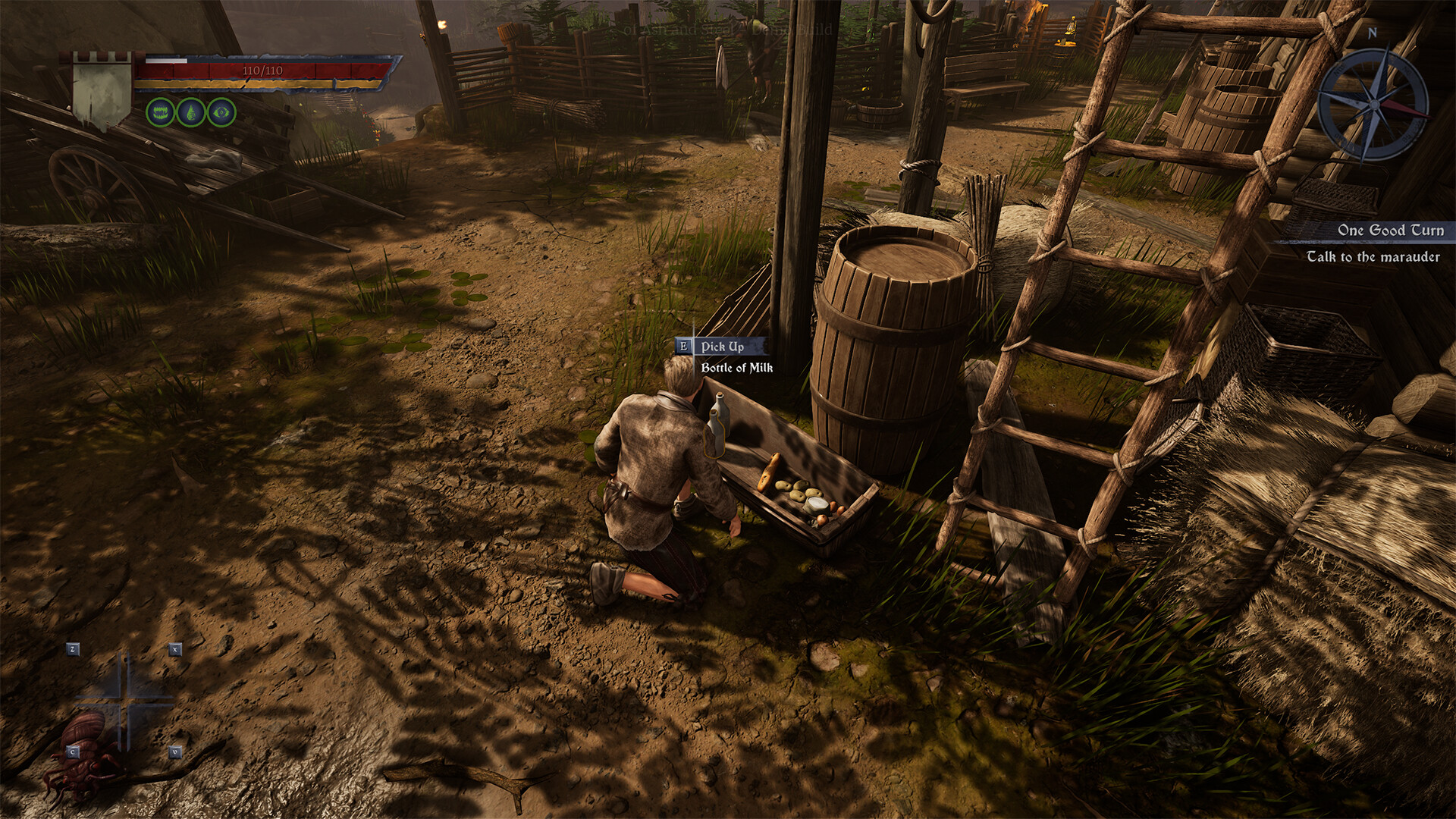 Spend several hours freely exploring the game’s starting region, following the main story while tackling numerous side quests. Experiment with skill trees and professions, explore the surroundings of the lumberjack camp and lend them a hand in their hard labour. Team up with Fox to investigate an abandoned village, and try to find your way to the harbour.