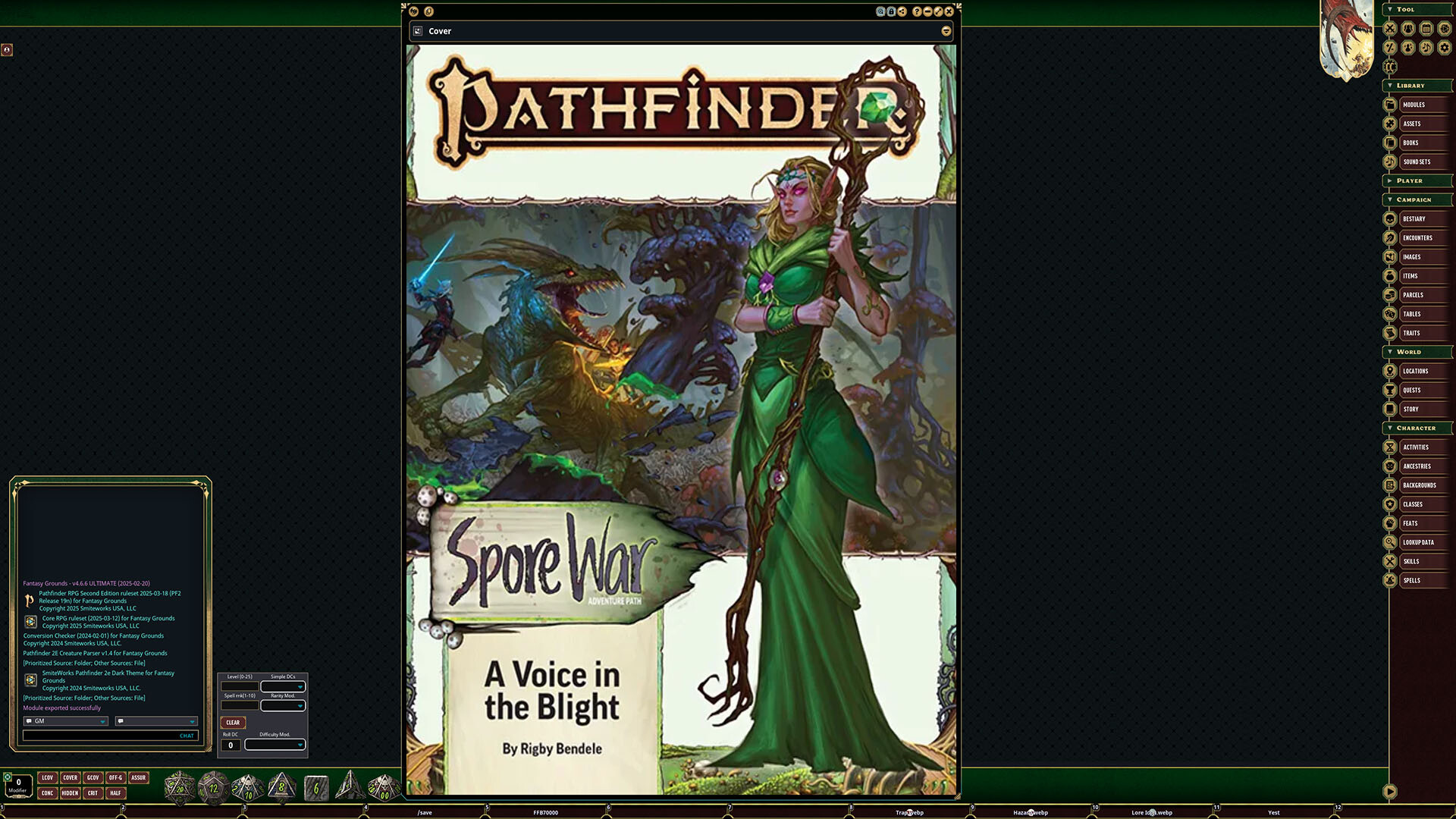 Requires: The free Fantasy Grounds virtual tabletop (VTT) software and the included Pathfinder 2.0 ruleset.