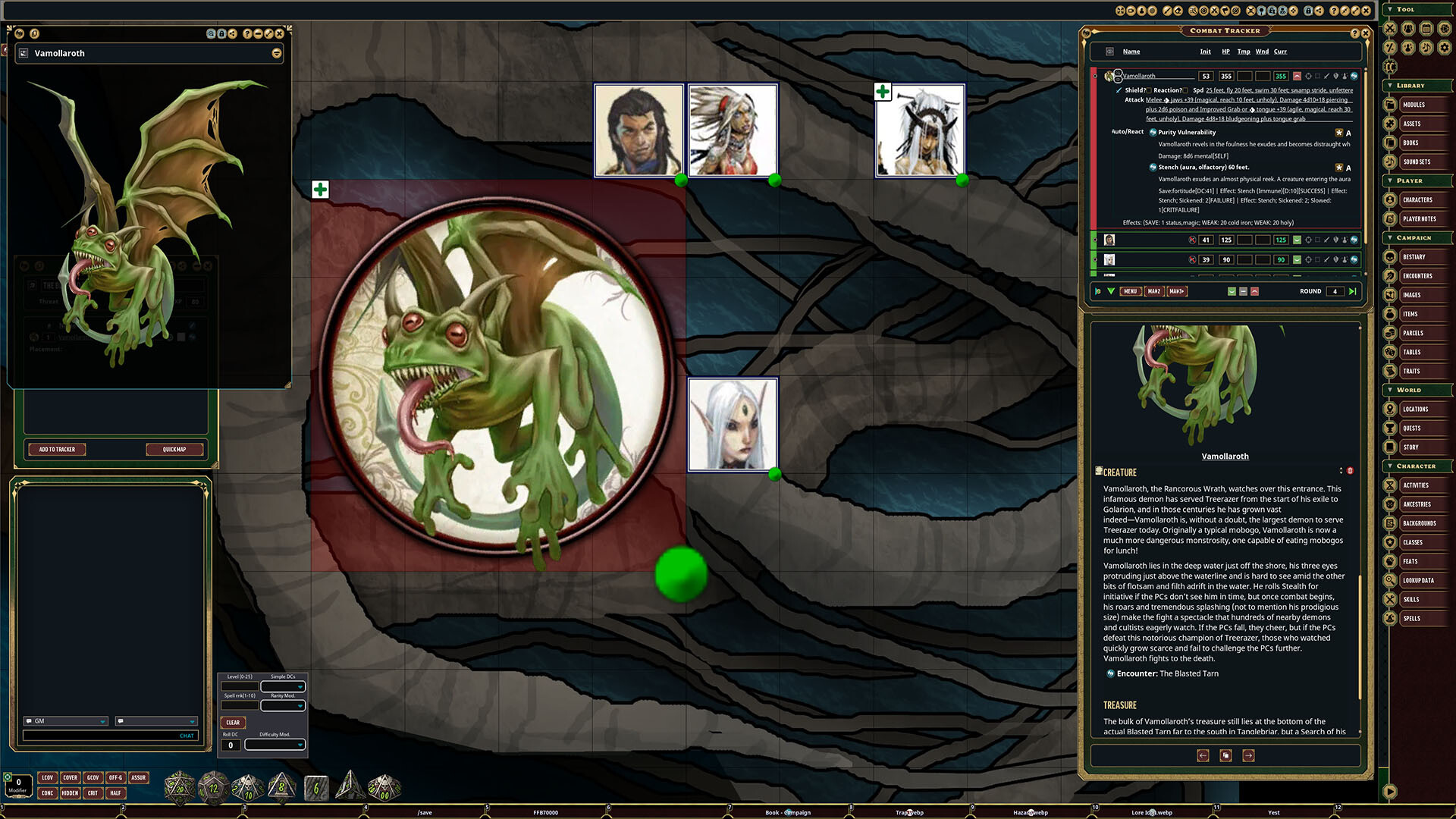 • Tokens for each encounter are all pre-placed in starting locations on the map. You can edit these on the fly.