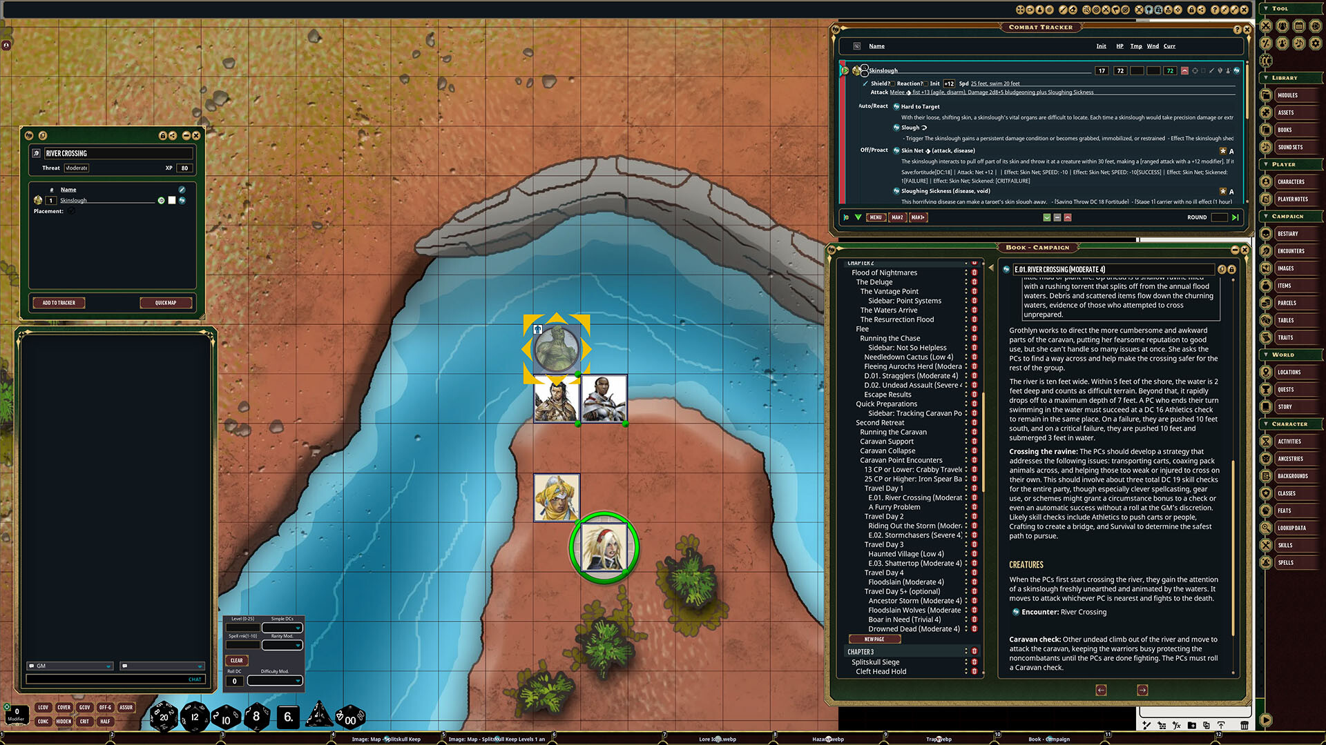 • Tokens for each encounter are all pre-placed in starting locations on the map. You can edit these on the fly.