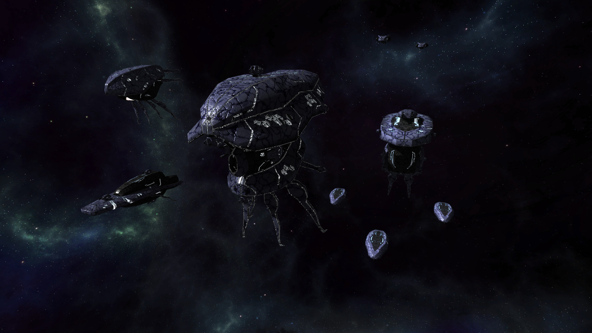 • Obtain resources by harvesting asteroids and salvaging ships and use them to build a massive fleet.