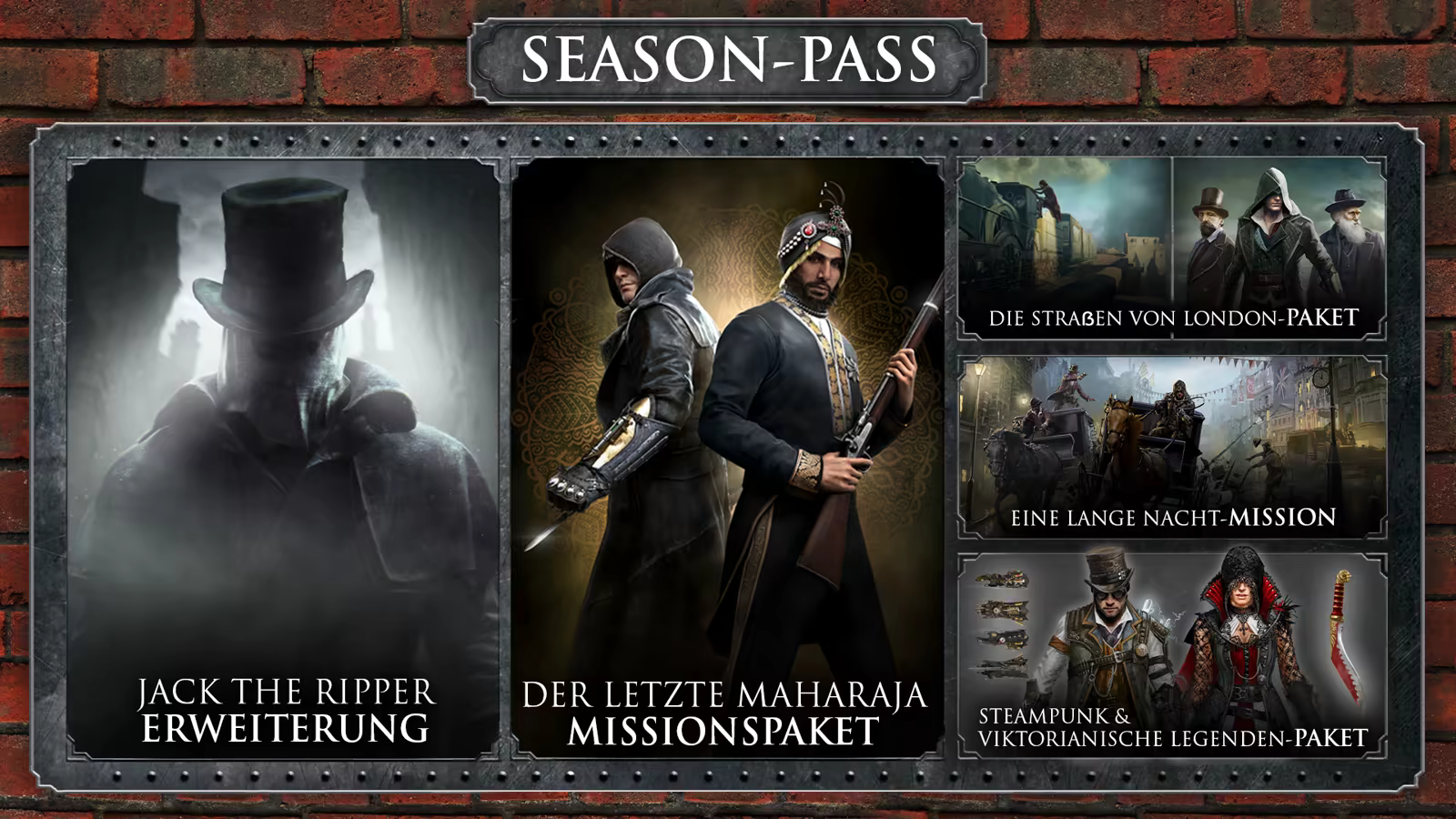 Der Season Pass für Assassin’s Creed Syndicate sichert dir Zugang zu zahlreichen zusätzlichen Inhalten und exklusiven Vorteilen: