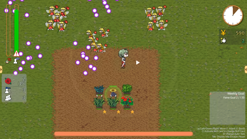 Yuuka must earn money by using her powers to grow flowers in the backyard of her flower shop, selling them to customers, and completing quests—while also fending off mischievous, bullet-shooting fairies.