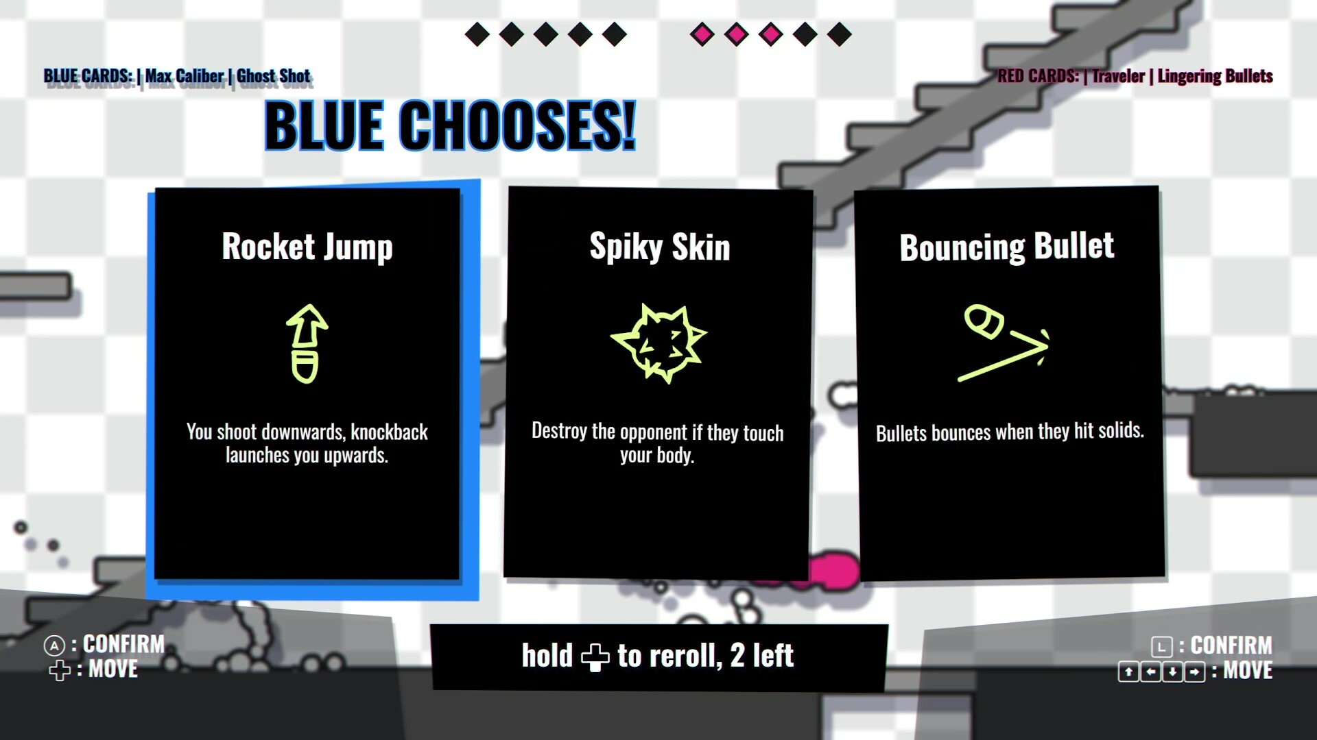 Not only upgrade cards can be drawn. Instead you can also select cards to weaken or annoy your opponent, for example with the "Pogo" card that forces the opponent to keep jumping or worsens their aim. BE MEAN!