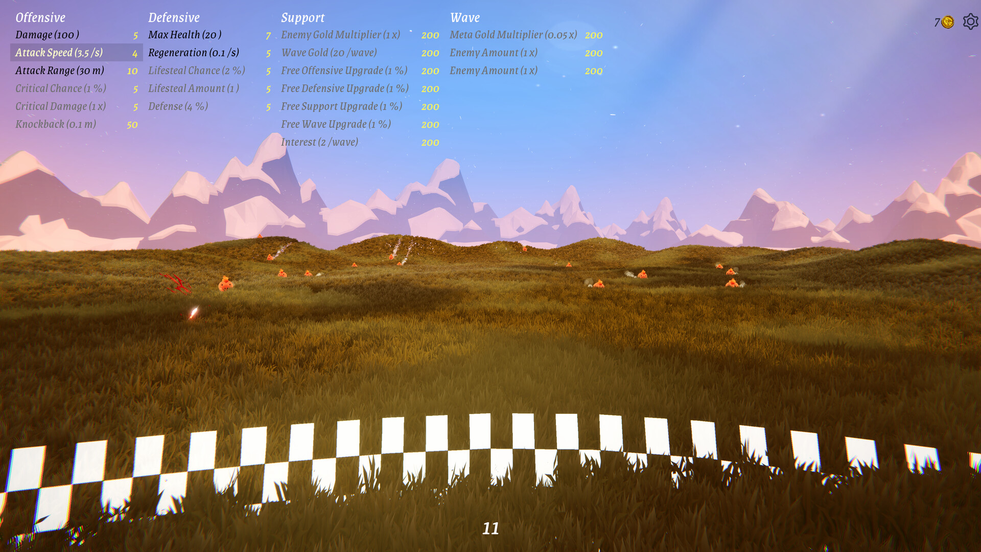 Earn Gold after each trial and spend it in the meta-upgrade menu to permanently raise your tower’s Attack, Defense, or Support stats. Each run builds on the last, so even if you fall before the final wave, you return stronger and more prepared.