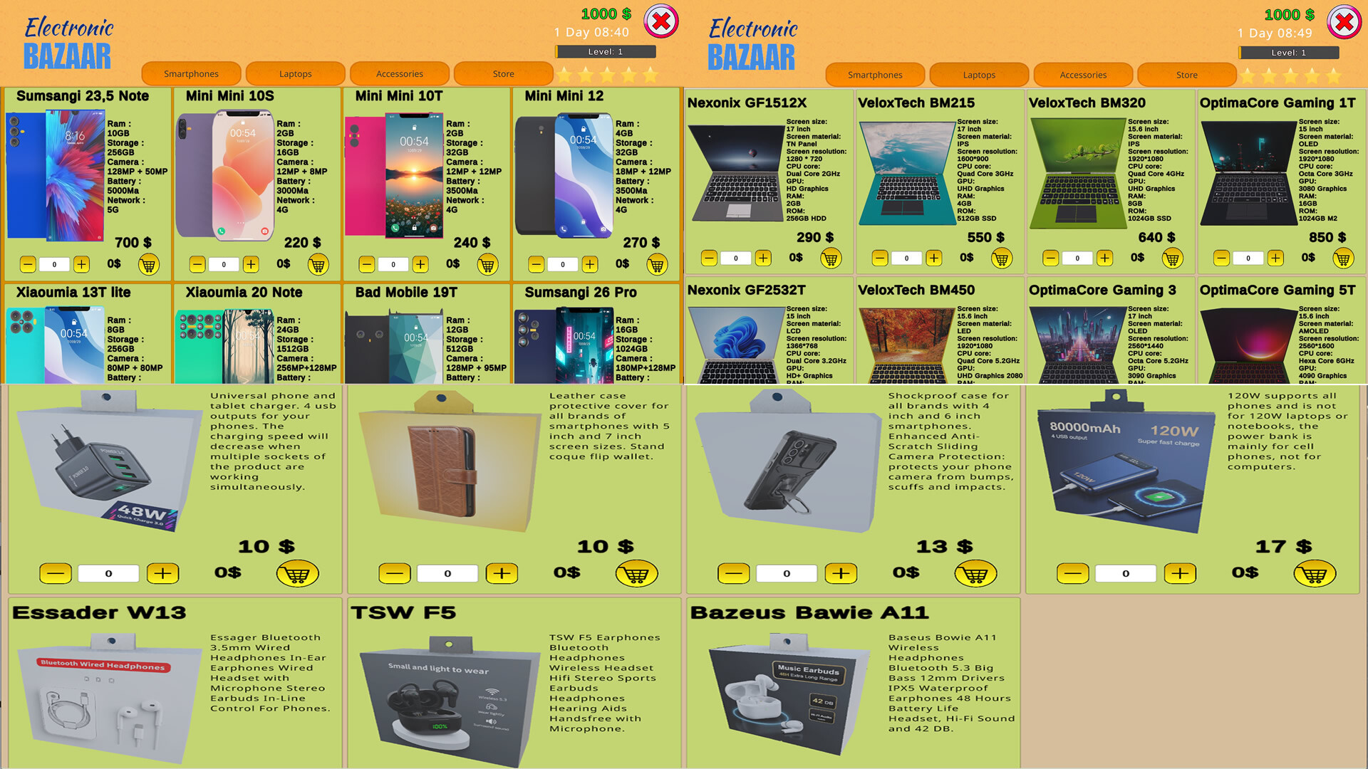 • Fast Progression: If you want to develop your store quickly and earn money fast, my advice is not to constantly sell very cheap accessories. Instead, sell phones or laptops, or if you prefer selling accessories, opt for expensive ones. This way, your earnings will increase much faster.