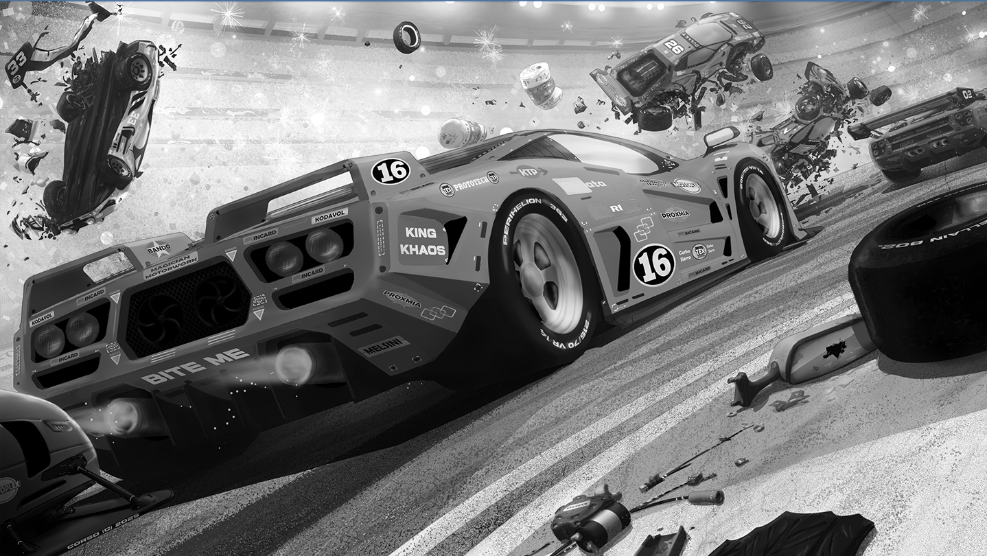 This game is a reflection of the 1990's era super cars and the arcade video games about them. It has meticulously hand drawn tracks with pixel art vehicles to give an overall sense of vitality and beauty. Despite the objective to smash as much as you possibly can while you race overpowered sports machines.