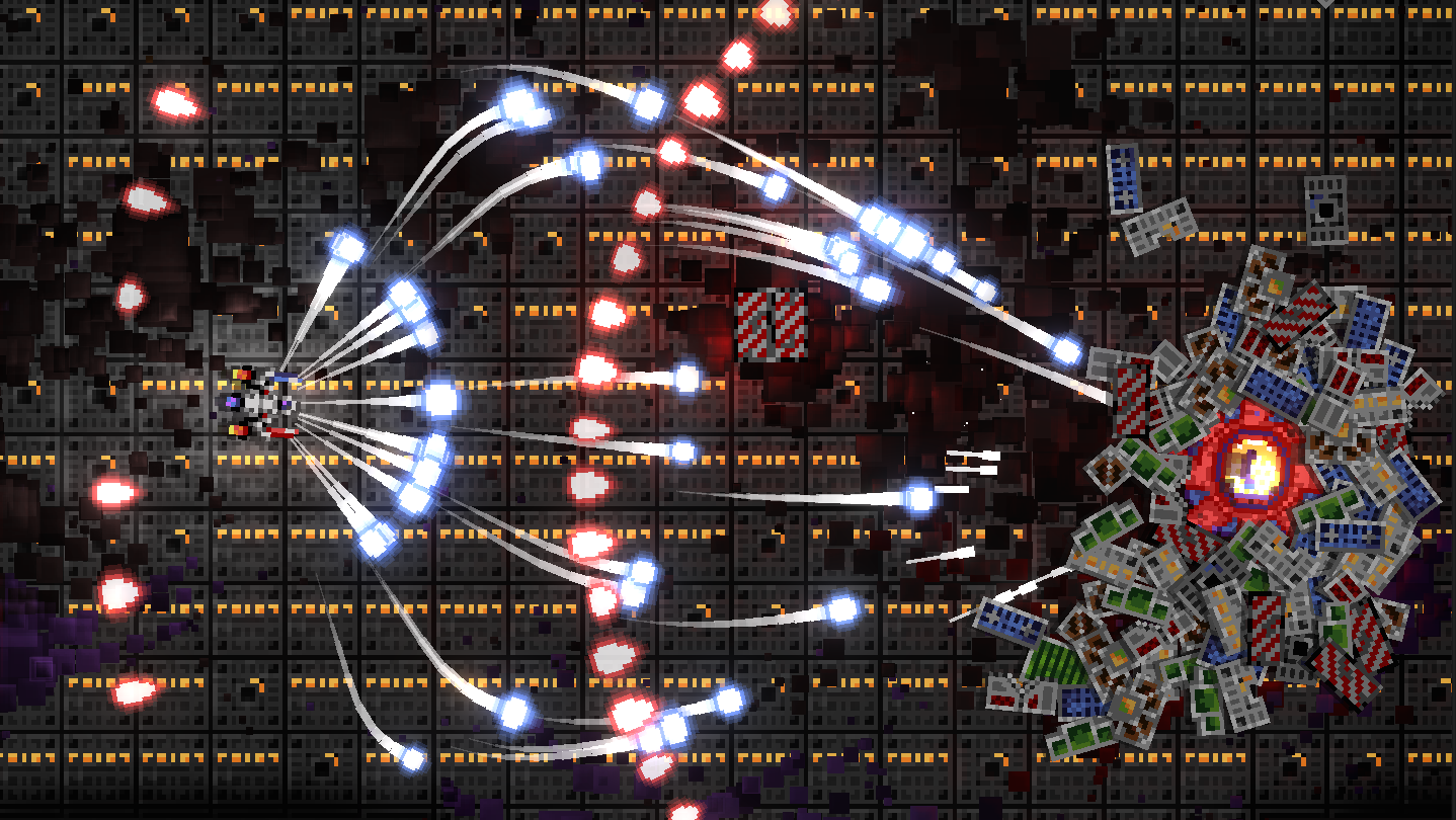 • Twin-stick shoot-em-up jammed full of bullets, gibs, grease, sparkles, and glow
