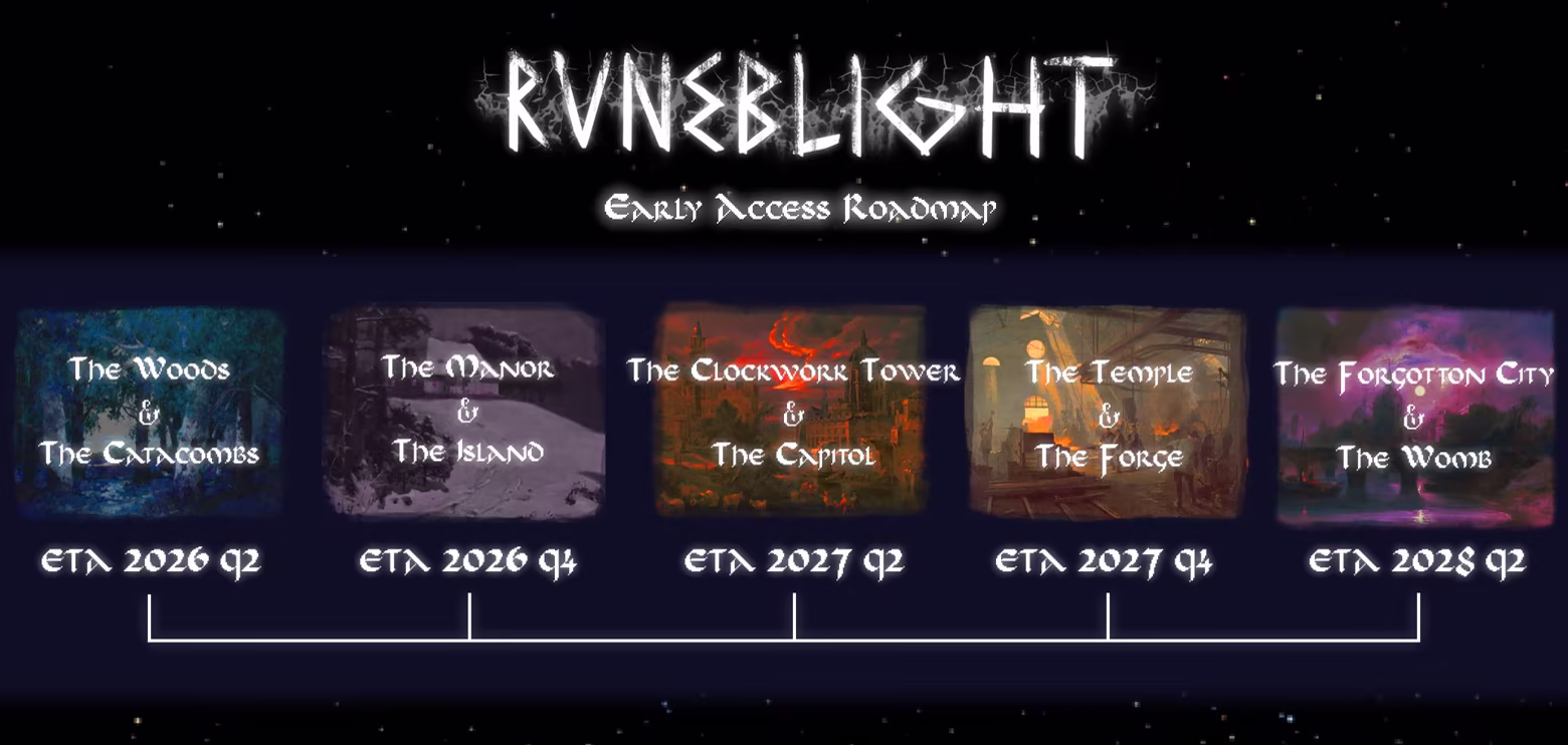Runeblight is a fairly ambitious project given we're looking for the scope of the final game to have a variety of locations to explore, weapons to find, and bosses to fight. Early Access allows us to get content out incrementally, while also getting feedback, which will be essential in shaping the game. We plan to update the game with new stuff over the span of a couple years.