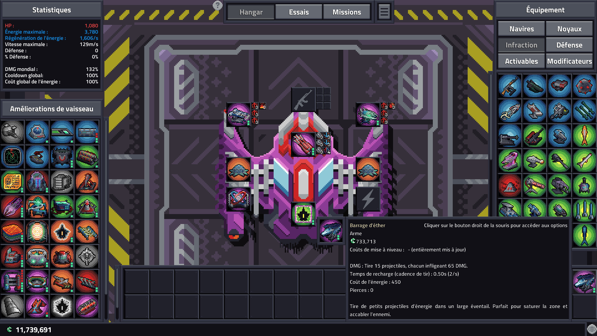 • Personnalisation approfondie du vaisseau. Déverrouillez 180 objets puissants pour adapter votre vaisseau à vos goûts. Des armes dévastatrices aux systèmes défensifs, en passant par les capacités spéciales, créez l'équipement ultime en fonction de votre stratégie et dominez n'importe quel affrontement.