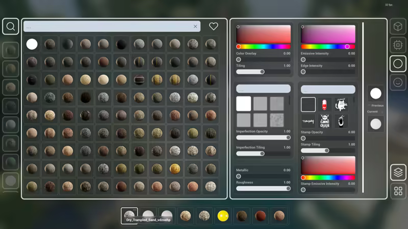 • Material Studio – Tweak color, metalness, glow, transparency, and wear directly in-game.