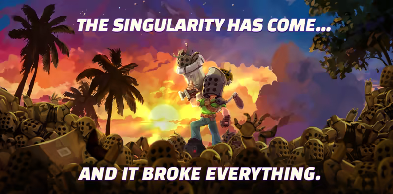 An evil AI ascended to godlike intelligence and trapped everyone inside the Singularity Island, forcing them to fight in an endless loop.