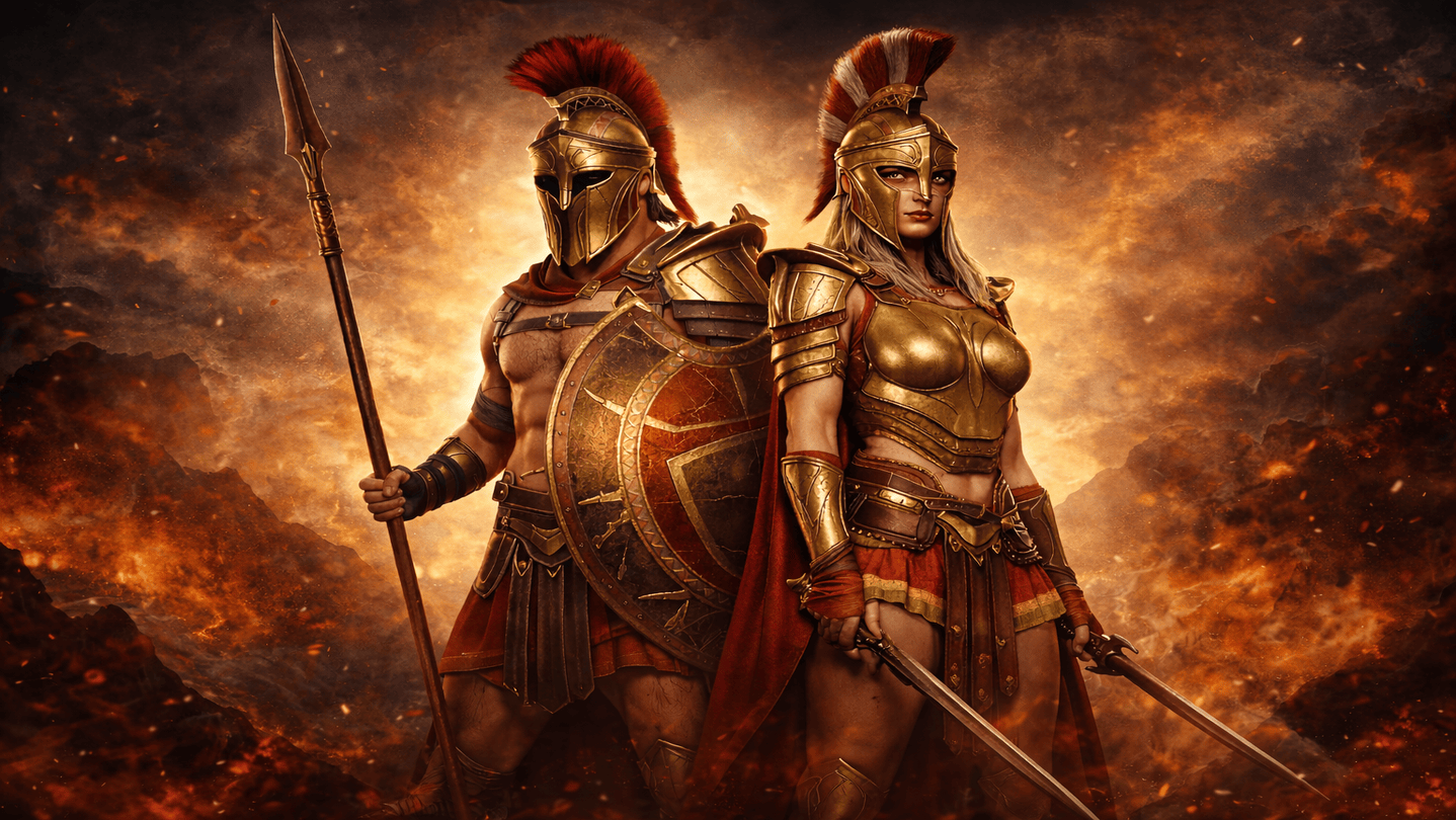 Some arenas are conquered by male warriors, others by female warriors—each a symbol of Spartan excellence, discipline, and lethal skill.