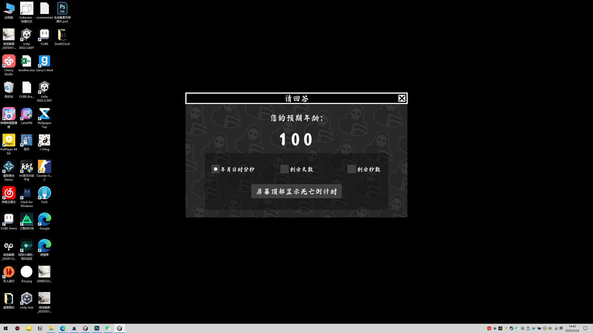 Death Of The Acountdown : 死亡倒计时 allows you to fill out a questionnaire to predict your age, and it can be displayed at the top of the desktop. It supports multiple countdown modes, including year, month, day, hour, minute, and second, remaining days, remaining seconds, and you can freely switch between multiple display modes. It supports re-filling the questionnaire and re-predicting.