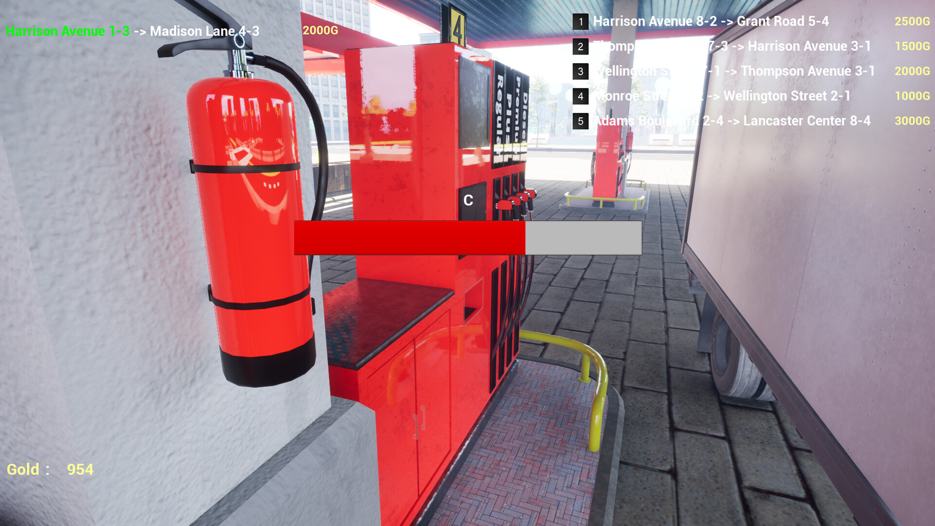 Arrive at the gas station to recharge your truck before it runs out of fuel.