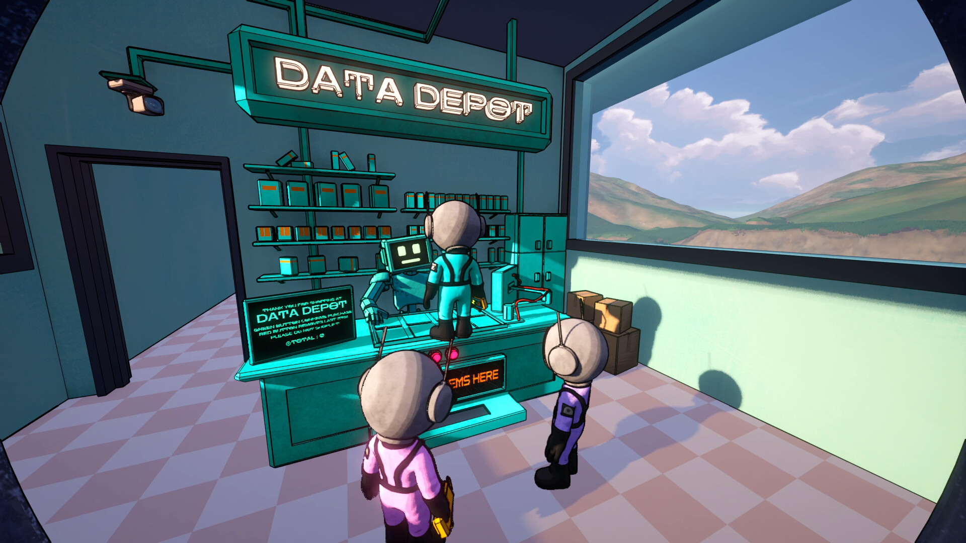 Data Breach es un juego cooperativo para 1–4 jugadores. Roba datos e irrumpe en instalaciones, luego llega al tren antes de que se agote tu batería. Gana Jolts para comprar equipo. Quédate más tiempo para mayores botines, pero si fallas la extracción, serás reacondicionado. Consejo: sé amable con el conductor del tren; sale a tiempo.