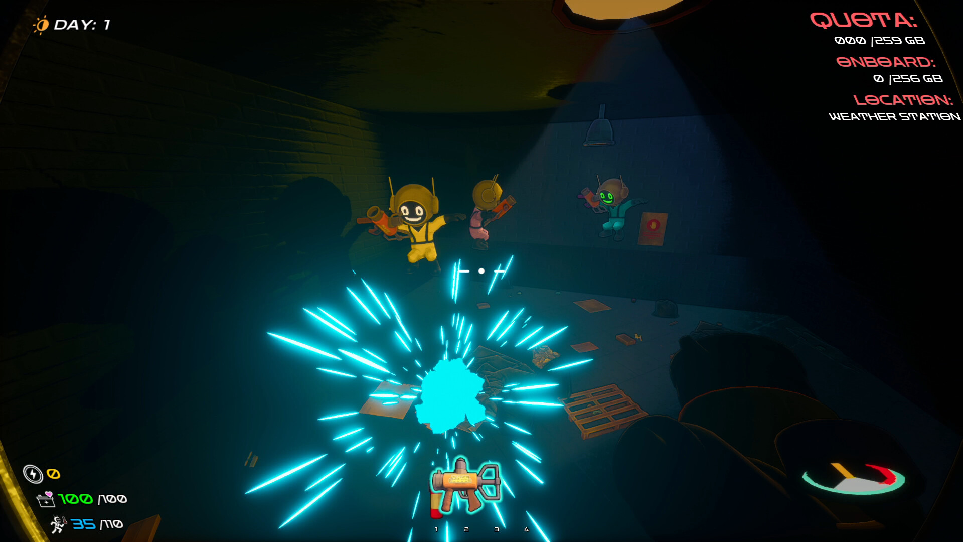 Bruk Jolts du tjener til å kjøpe utstyr, oppgraderinger og lagringsplass i butikken. Butikkeieren følger alltid med — sørg for å betale for varene dine!