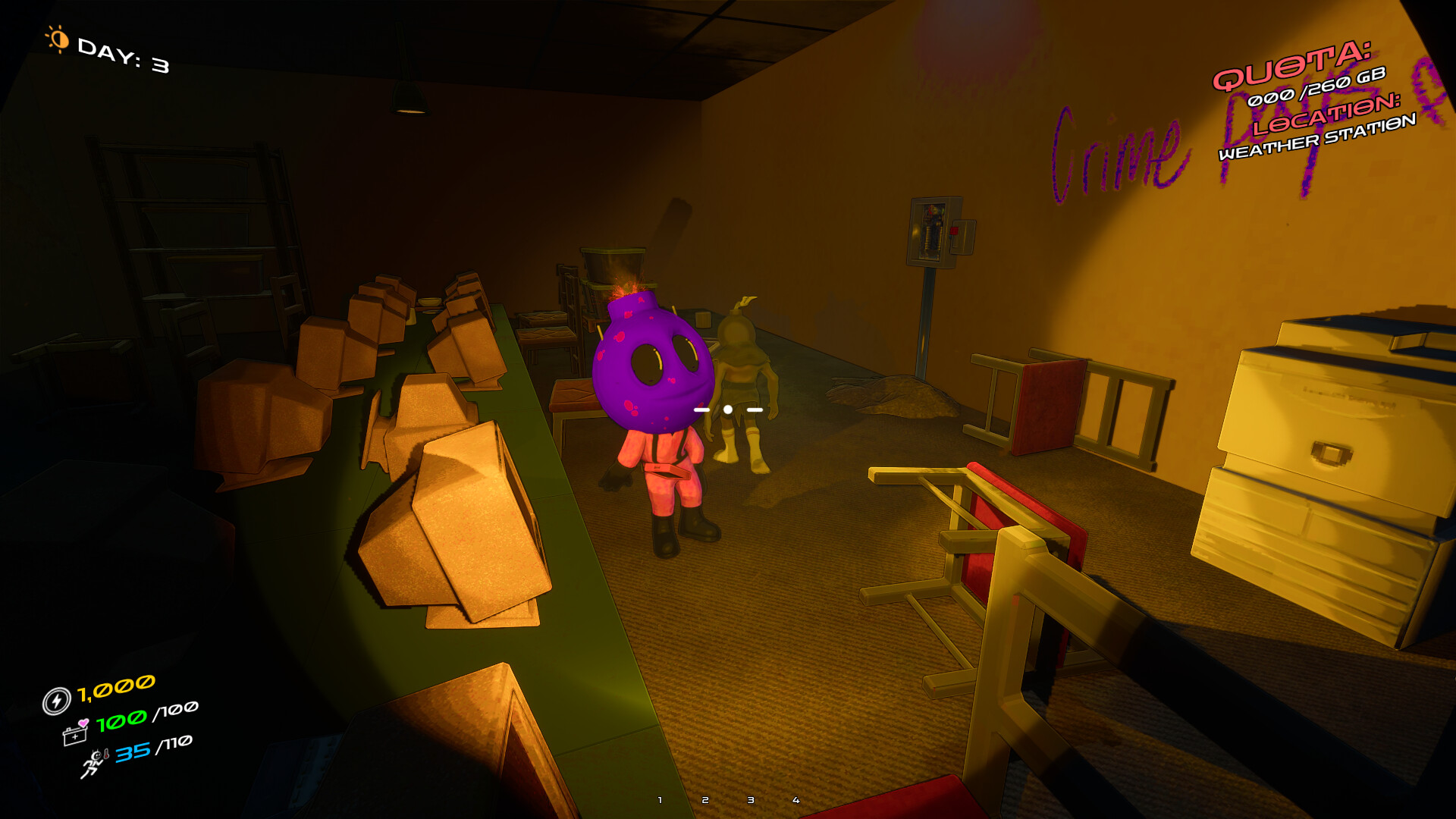 在商店使用你獲得的 Jolts 購買裝備、升級與儲存空間。店主一直在看著,記得結帳!