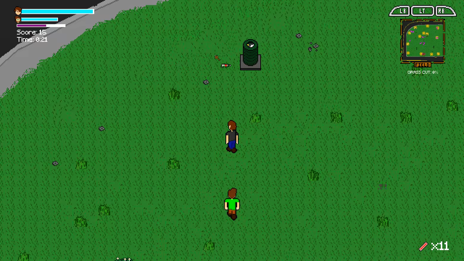 Have a little sibling, child, niece, nephew, or even your grandma that wants to play? You're in luck. Weed Wacker Warrior has local multiplayer. By plugging in 2 controllers and enabling the state of the art "Little Sibling Mode" you no longer have to give them an unplugged controller! A second player can join in as the following character and provide support to player one!