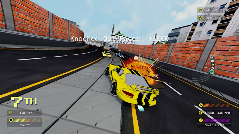 • Choca contra otros conductores para reducir su salud. Si reduces su salud a cero, los eliminarás brevemente de la carrera.