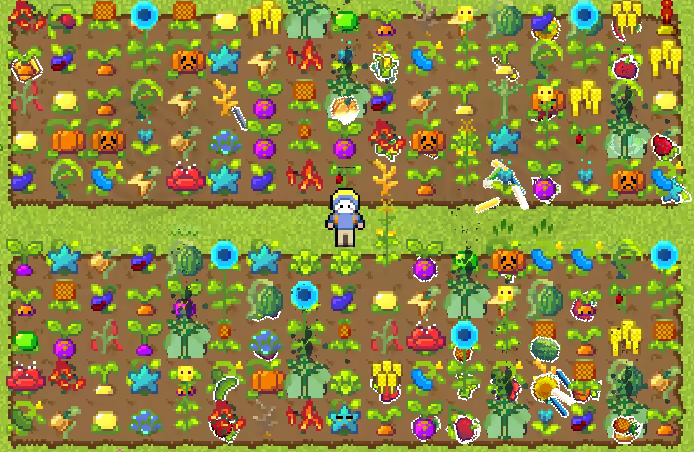 Gutfarm is a top-down 2D pixel art game that blends farming, tower defense, and survival elements. On this alien island, you will expand and grow your farm by planting crops, unlocking genetically mutated varieties, defending against waves of monster attacks, collecting relics, and more!