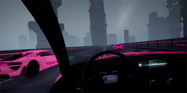 In VR, the neon-soaked aesthetics of the ’80s feel more vivid than ever. Dark tracks, pulsating horizons, flickering stars, and hypnotic lights surround you from all sides. Every flash, reflection, and shadow comes to life in immersive virtual reality. A powerful electronic soundtrack and rich spatial audio complete the experience, pulling you deeper into the retro-futuristic world.