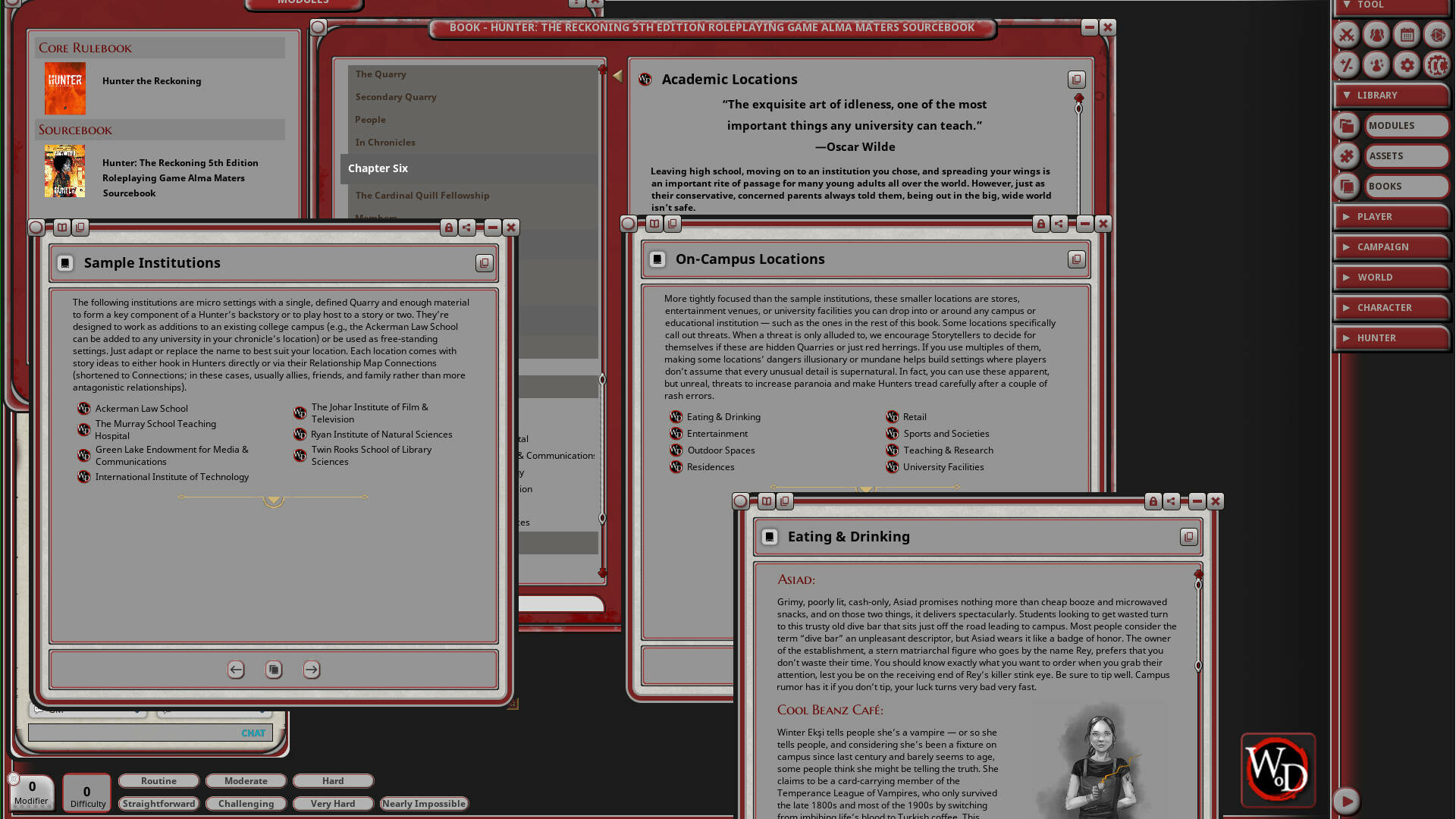• Four fully detailed academic institutions each with a chronicle's worth of problems.
