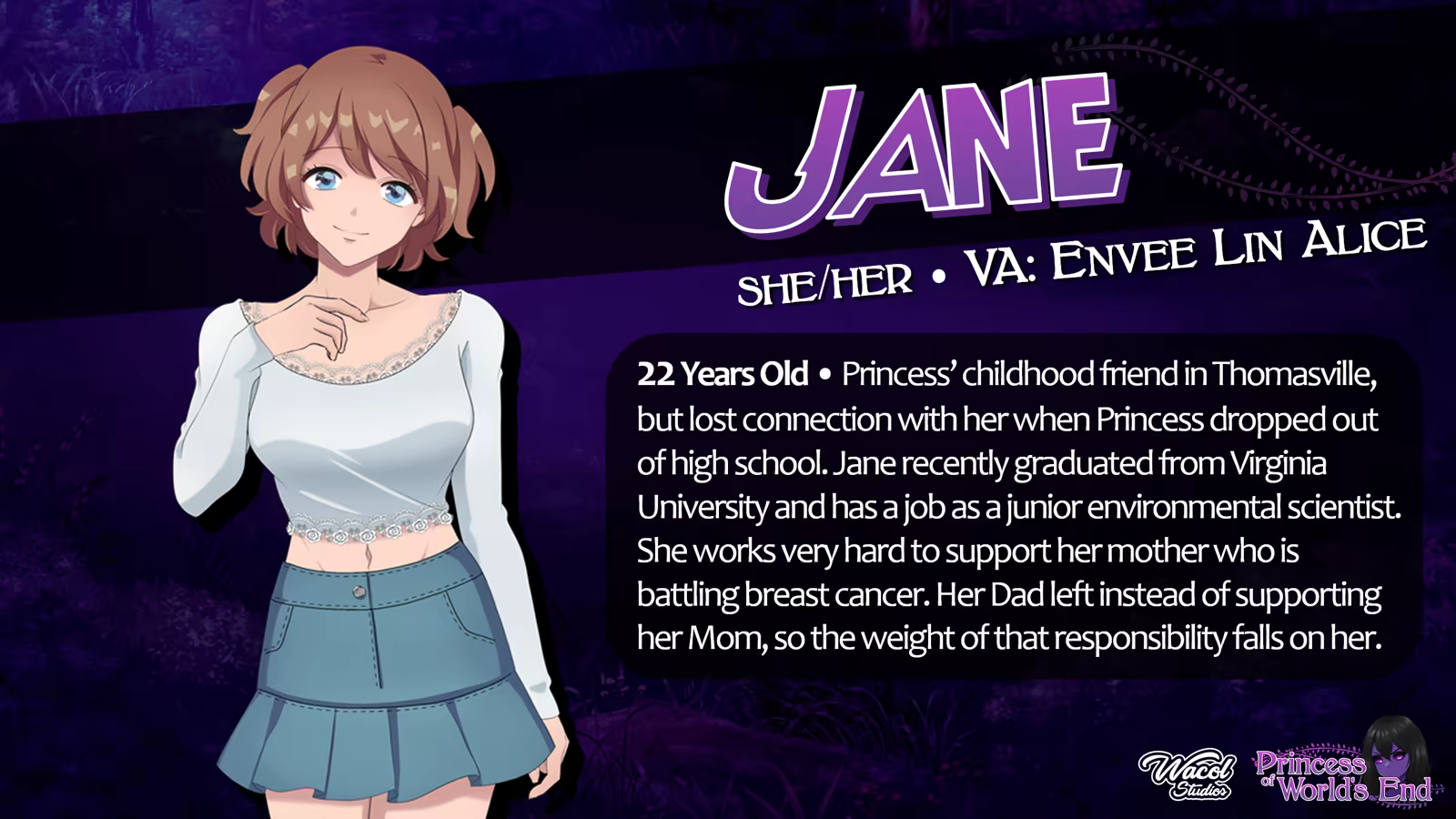 Play as Princess (voiced by ShadowgamingVA), a high-maintenance 21-year-old girl who earned the nickname through her bratty behavior. After running away from home at 16, she worked dead-end job after dead-end job in order to survive and manage her addiction to a pain pill called Numb-X. The story begins with her waking up in a forest late at night during a rainstorm after getting knocked unconscious and robbed of all her belongings. Through a strange series of events, she unlocks a new power that will change her life forever. You will help guide Princess to get her life together, manage her relationships and, most importantly, prevent the end of the world.