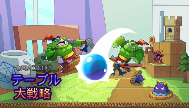 『テーブル大戦略』は、戦略と物理が独自に融合した、小さなミニチュアフィギュアで遊ぶゲーム。想像してみよう。君はキッチンテーブル上に小さなファンタジー世界のジオラマを作り上げ、自分の城を守るべく慎重にミニチュアを配置した。そこへなんと、敵の部隊が四方から攻めてきた!だが敵の体力を減らしたり、防御力を気にしたりする必要はない。いろいろな発射物(矢やビー玉など)を投げたり、トラップを使ったり、テーブルから押し出したりして、物理的に敵を吹っ飛ばすのだ。フィギュアごとの形や重さを計算に入れなければならない。