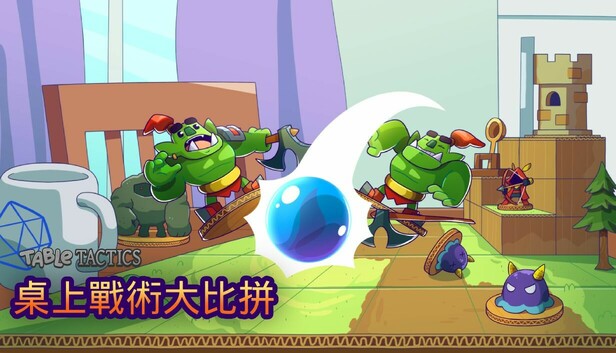 獨一無二的《桌上戰術大比拼》結合了戰略與物理,以迷你模型進行遊戲。想像你盯著自己在廚房檯面上組裝的小小奇幻世界立體透視模型,小心翼翼地放置模型來保衛你的城堡。糟了!敵軍從四面八方攻來!但你不需要削減他們的血量,也不必擔心對方的裝甲,而是要發射箭矢或彈珠等物體、設下陷阱,親手把敵軍推下檯面。用物理攻擊放倒敵軍時,你必須考量每個模型的形狀和重量,見機行事。