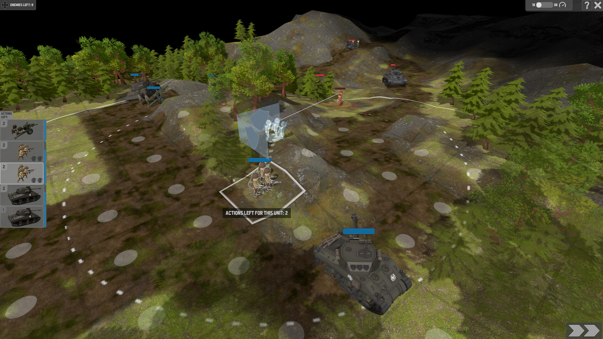 Tactical turn-based combat in WW2. Lead U.S. infantry, tanks, and artillery through procedurally generated battlefields. Use cover and clever tactics to outmaneuver German forces.