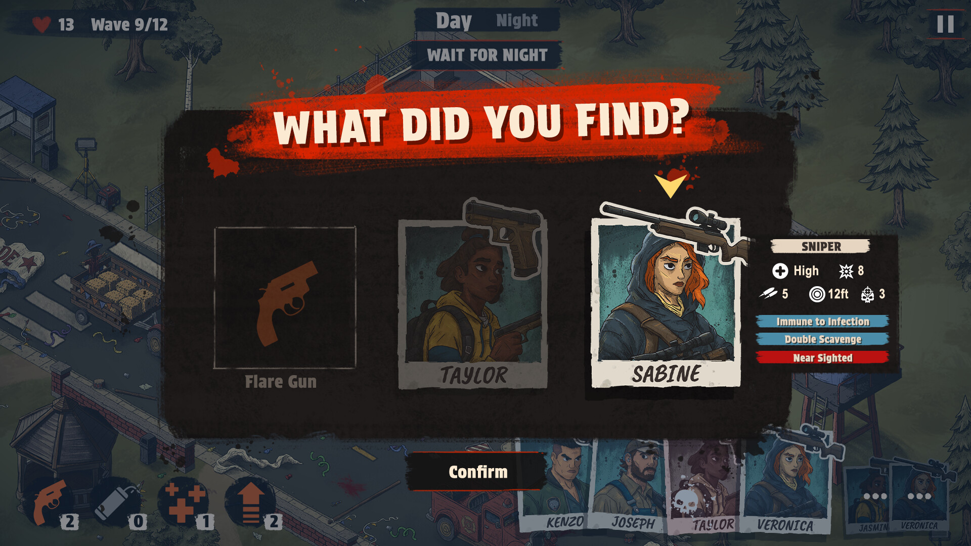 Scavenging can get you resources, relics, and even new survivors, but comes with its own risks like infection, developing negative traits, and even attracting more powerful zombies for the next wave!