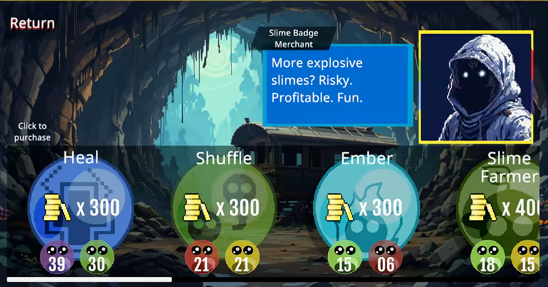 A colorful match-3 roguelite where you collect mana from slimes to cast spells, battle unique bosses, unlock power-ups, and adapt your strategy run after run.