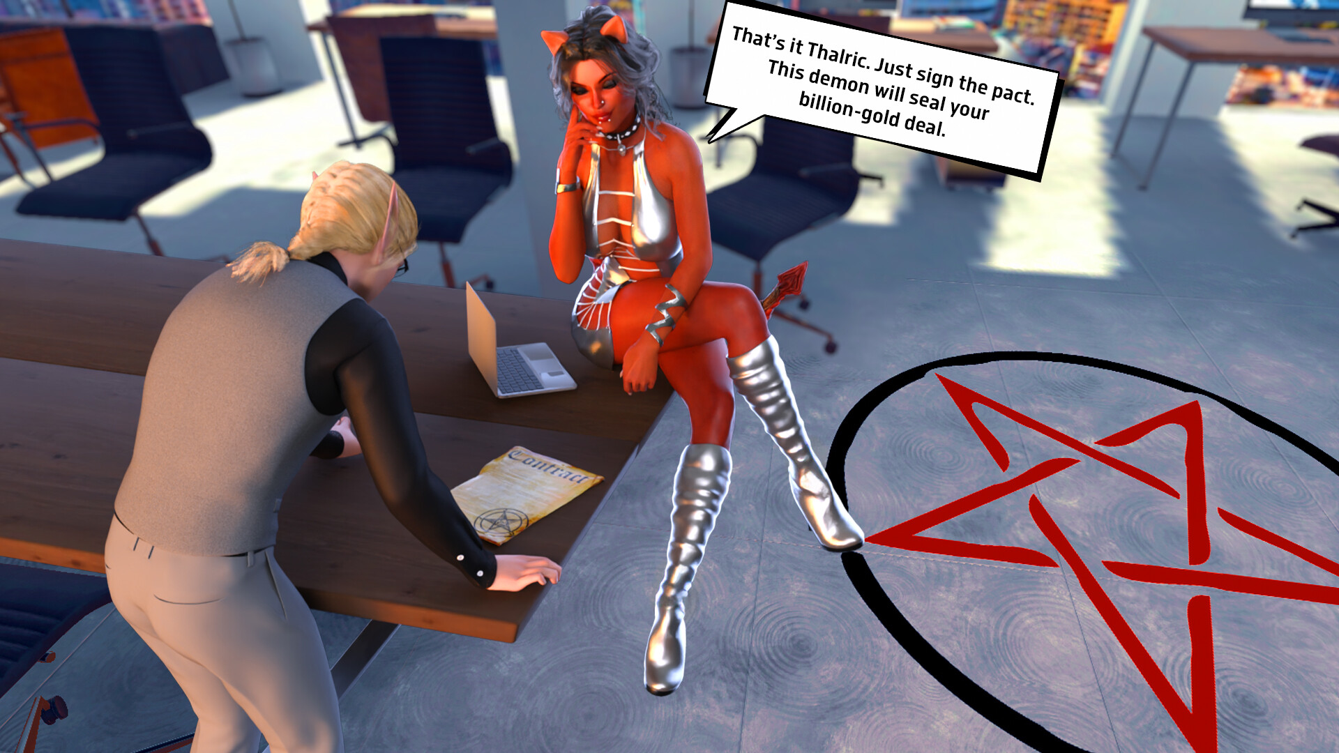 Orcs, elves, tieflings, and succubi trade their swords for briefcases, working real jobs—personal trainers, reporters, executives, and waitresses—in a realm of skyscrapers, diners, and gyms. But when the workday ends, these characters unleash their primal desires in outrageous, steamy encounters. From a sultry interview in a photo studio to a demonic pact in a high-rise office, every map offers a new tale of seduction and fetish-fueled fun. Will you join the fantasy workforce and surrender to temptation?