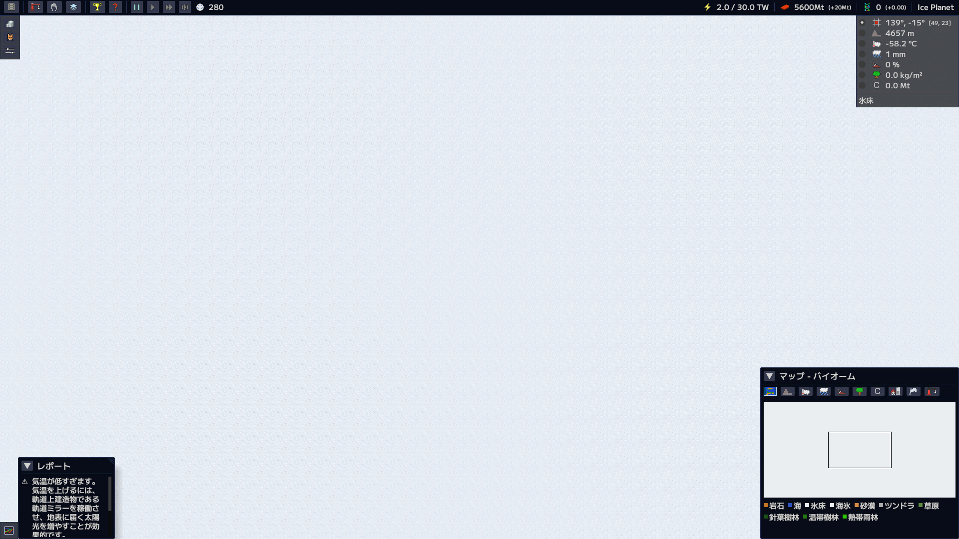 プレイヤーにはテラフォーミングのための様々な手段が与えられます。ダイソンスウォームを建設して必要なエネルギーを確保したり、巨大な鏡を建設して日光を調整したり、酸素発生機で生命に必要な酸素を生産しましょう。