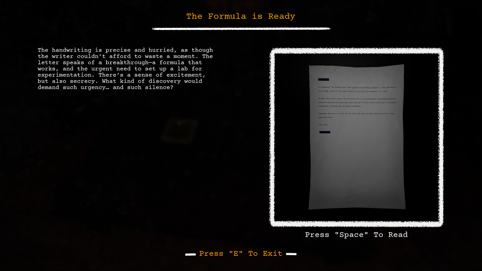 Torn Veil is a first-person psychological horror game that plunges you into a chilling narrative of scientific ambition, moral decay, and the terrifying consequences of playing god. Torn Veil combines stunning visuals, immersive sound design, and a deeply unsettling atmosphere to deliver an unforgettable horror experience.In this demo, you’ll experience the first level of the game "the ground floor", where the story begins. This is the heart of the mystery, where the Torn Veil Project was born. You'll uncover early clues, learn the game’s core mechanics, and begin piecing together the unsettling truth that lies beneath the surface.The full version of the game will continue your descent into the unknown, expanding the story and deepening the horror. You'll explore: