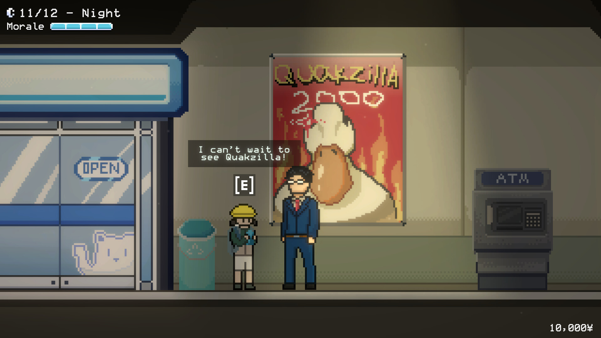 Fight to escape debt in a world of corporate intrigue where reputation and information are your currency. Sell sensitive information & navigate office politics in this Office-noir RPG set in 1990s Japan.