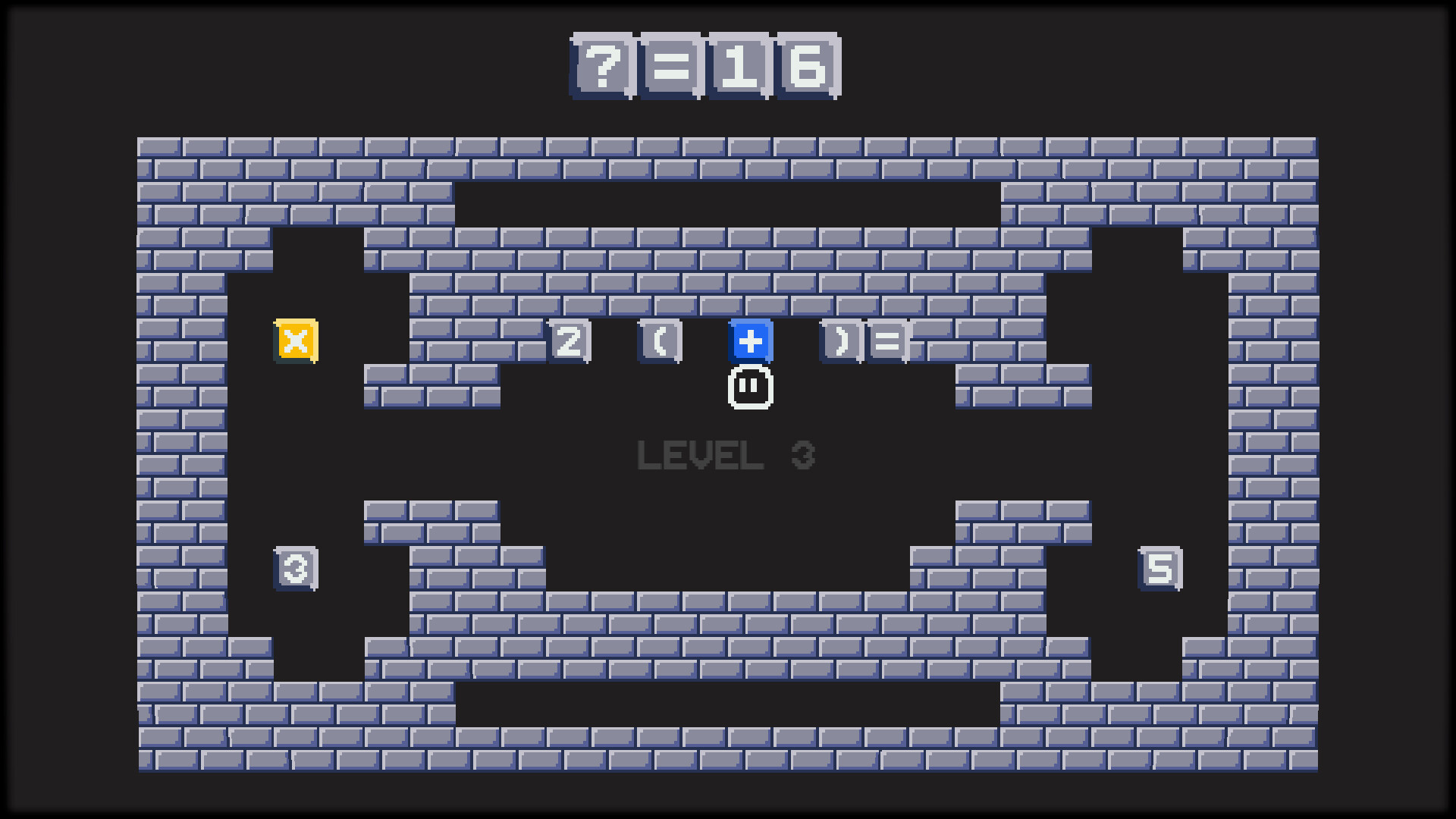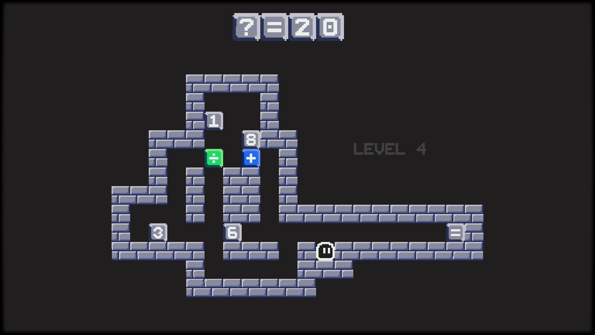 • The game has planned over 50 levels. Going through locked doors or sliding on ice and using different combinations of operations (+, –, ×, ÷) you must reach the target value.