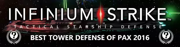 Infinium Strike is an original tactical tower defense game that sees you as the weapons officer aboard the TSF Freedom Strike. Scavenge Infinium – the living metal of the cosmos – from the wreckage of your enemies to create powerful turrets and deadly drones, and turn the tide of the Wrog war. Will the Battlecarrier Freedom Strike survive the relentless waves of Wrog fighters?