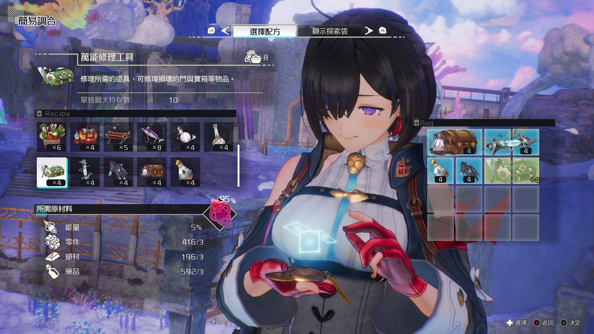 ※各類配方可在開放簡易調合或設置回想配方台後、設計圖可在開放建置後確認。