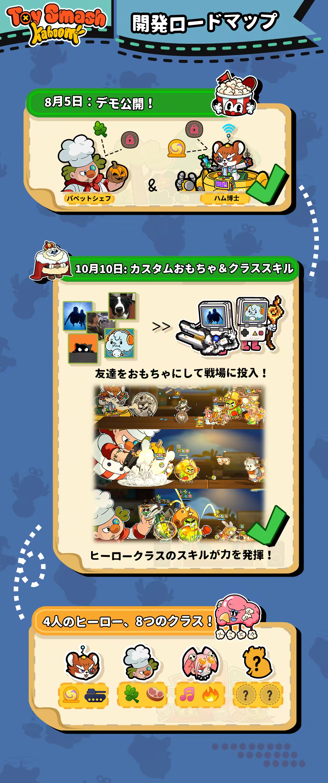 全てのおもちゃには特殊なスキルがあり、合成したり組み合わせたりできます!異なるおもちゃを連携させて、より多くの戦術を編み出そうぜ!