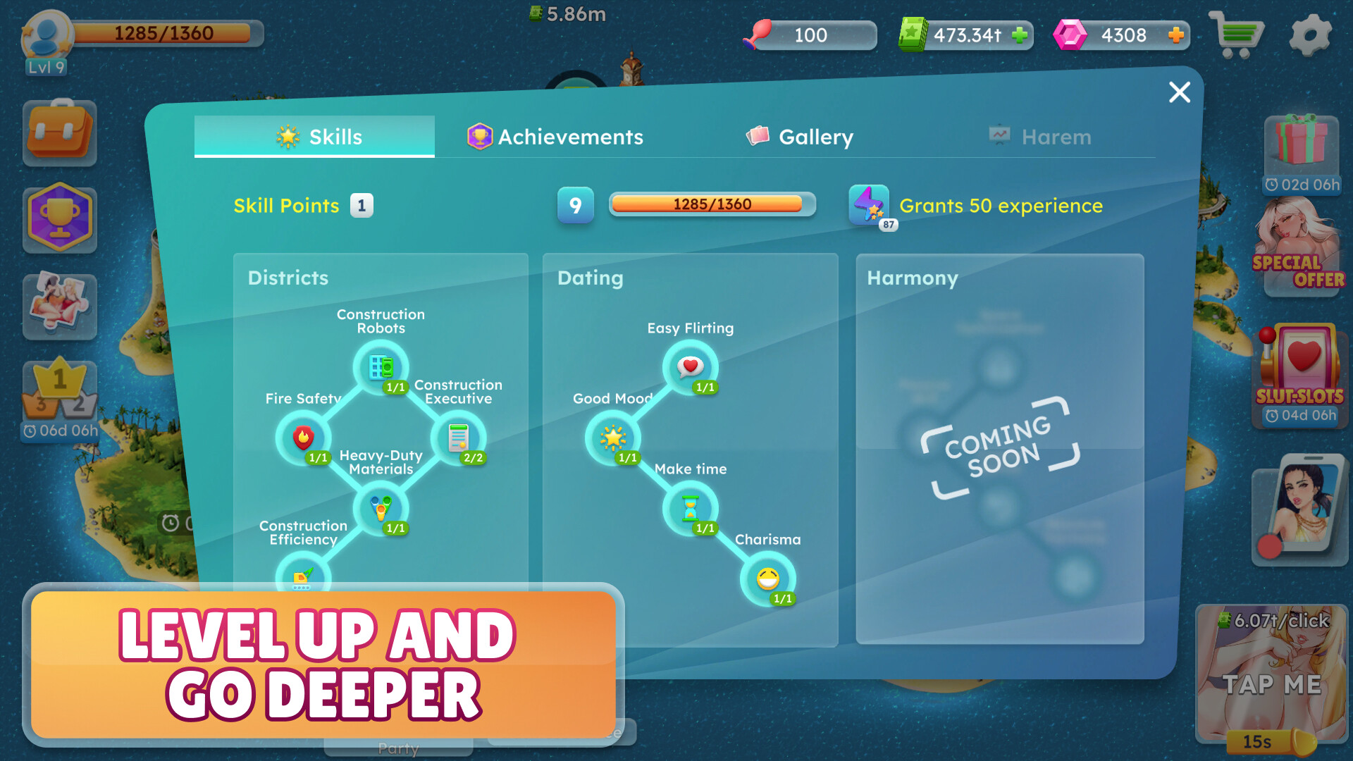 Welcome to Sexy Beaches – the ultimate idle dating sim where business meets pleasure!